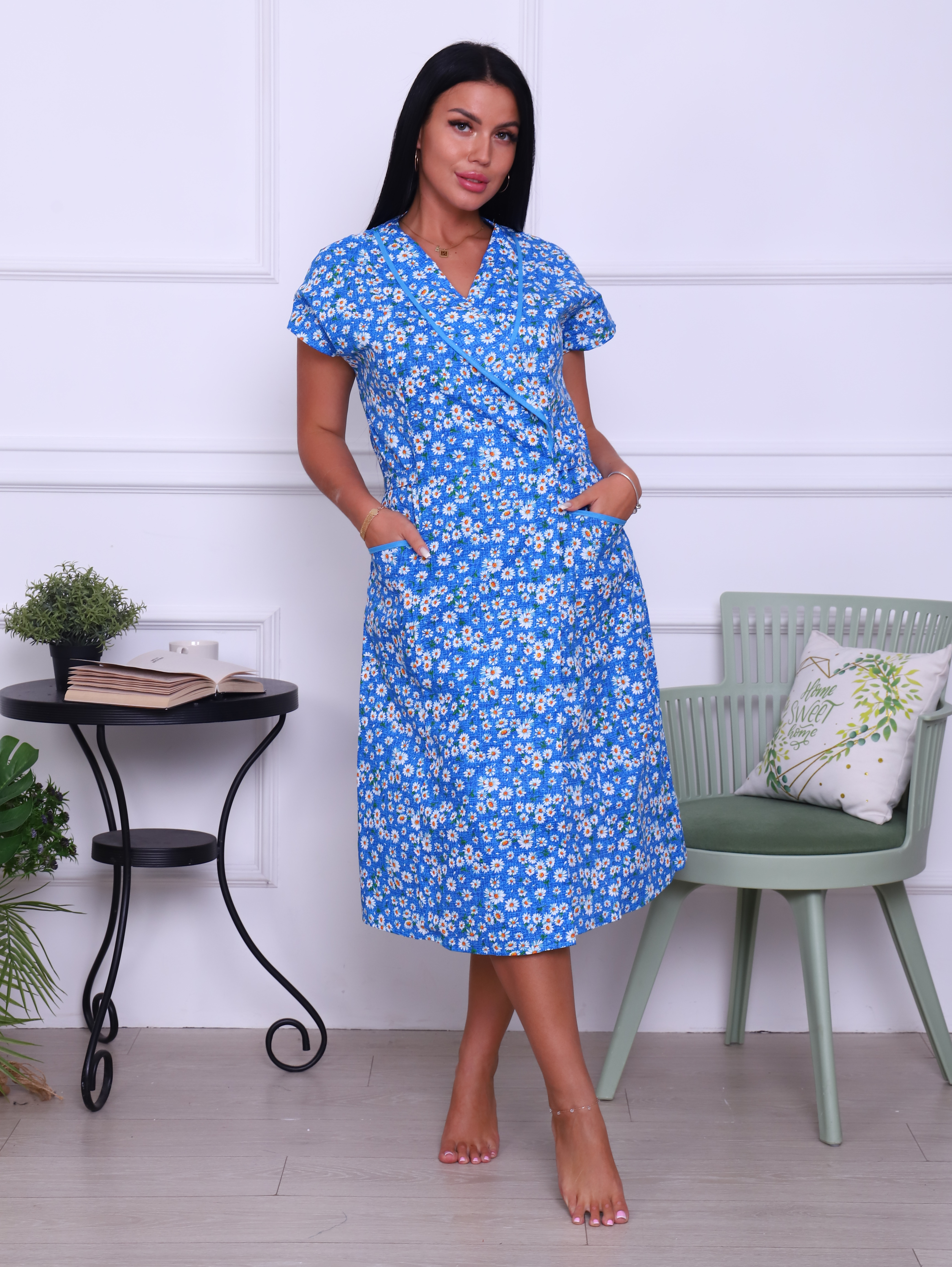 Женский халат из бязи на запах Ромашки