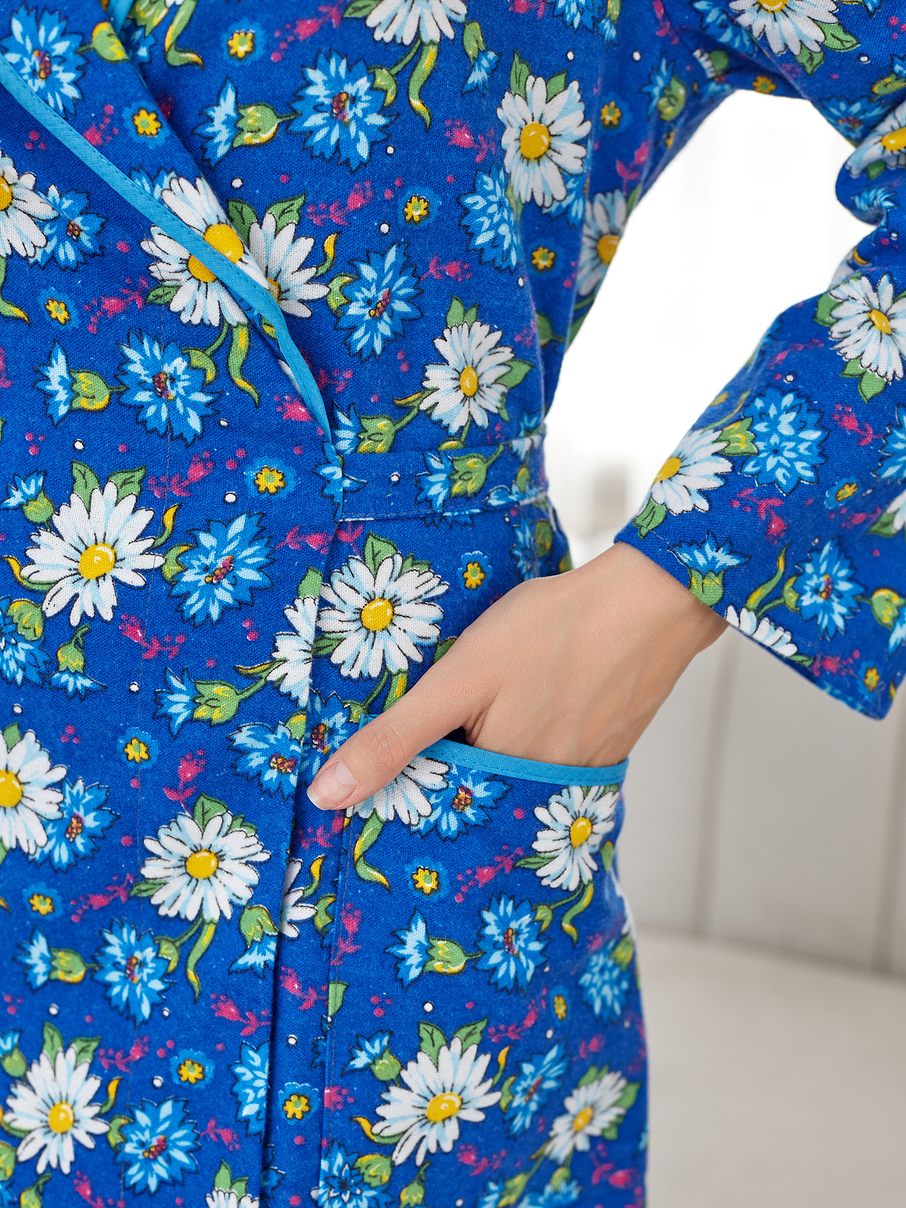 Халат женский фланелевый на пуговицах Ромашки